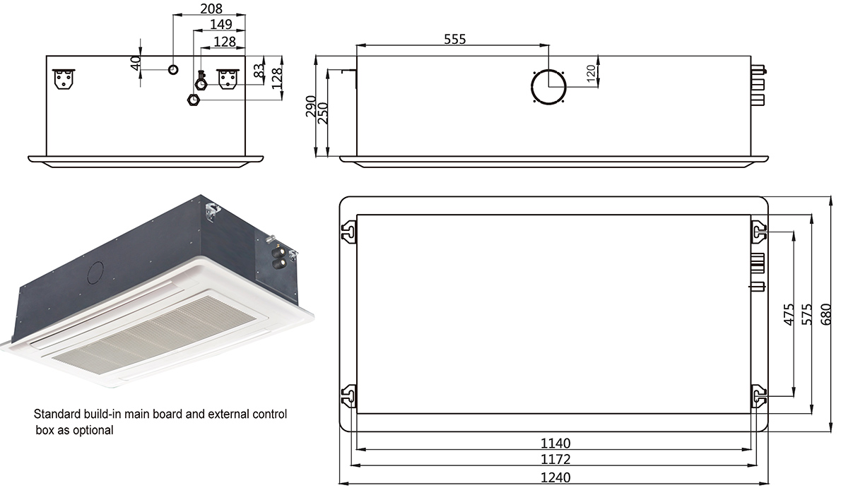 700mm head drain pump with no return valve is installed in the unit; an float switch inside as well to prevent from leaking. If the water raising to a certainly position, the float switch will act and alarm, then the unit will cut off the water valve or stop the fan motor.